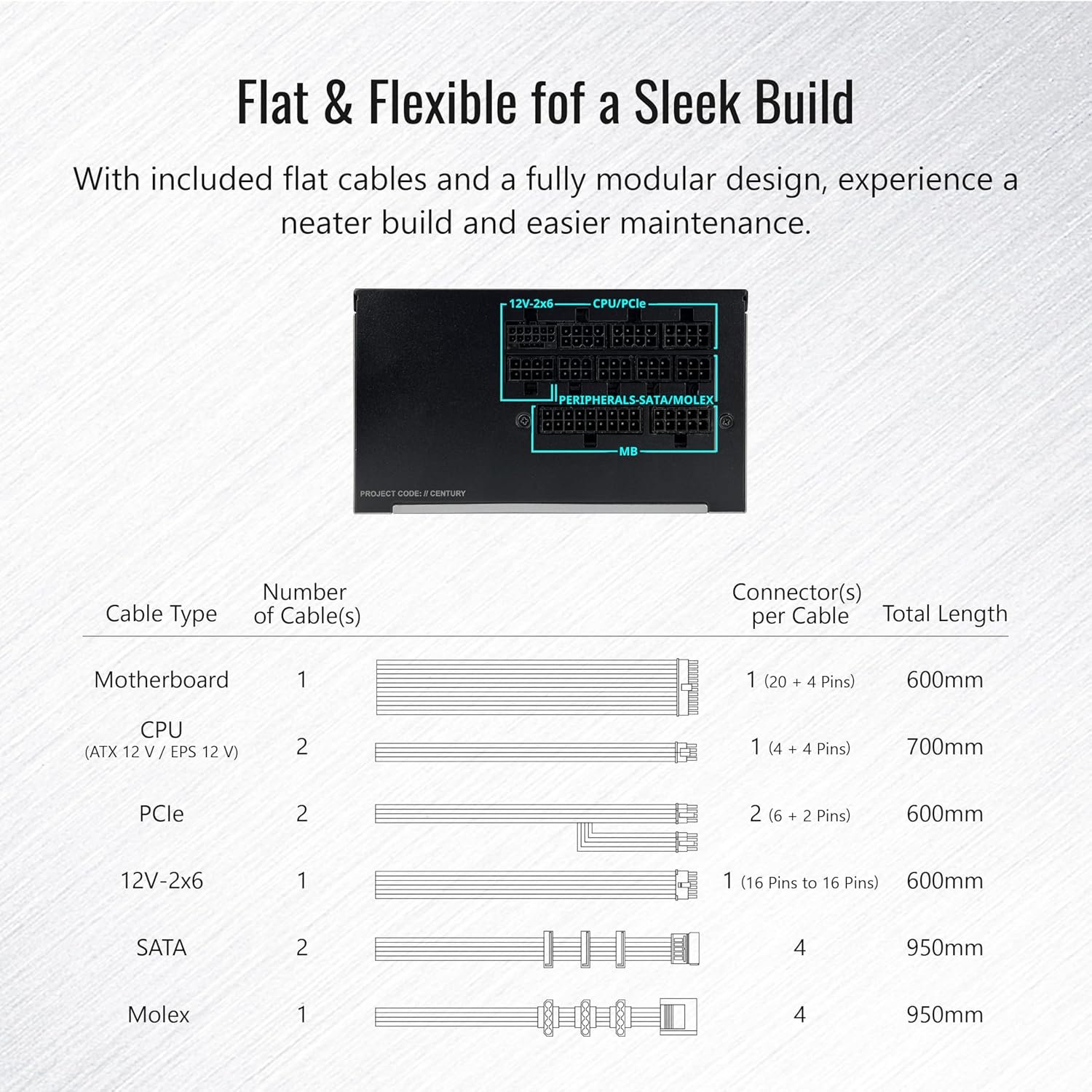 MONTECH Century II – 850W High-End ATX Gaming Power Supply – 80 Plus Gold & Cybenetics Platinum – Fully Modular – ATX 3.1 & PCIe 5.1 Ready with 12V-2×6 Cable – 10 Years Warranty